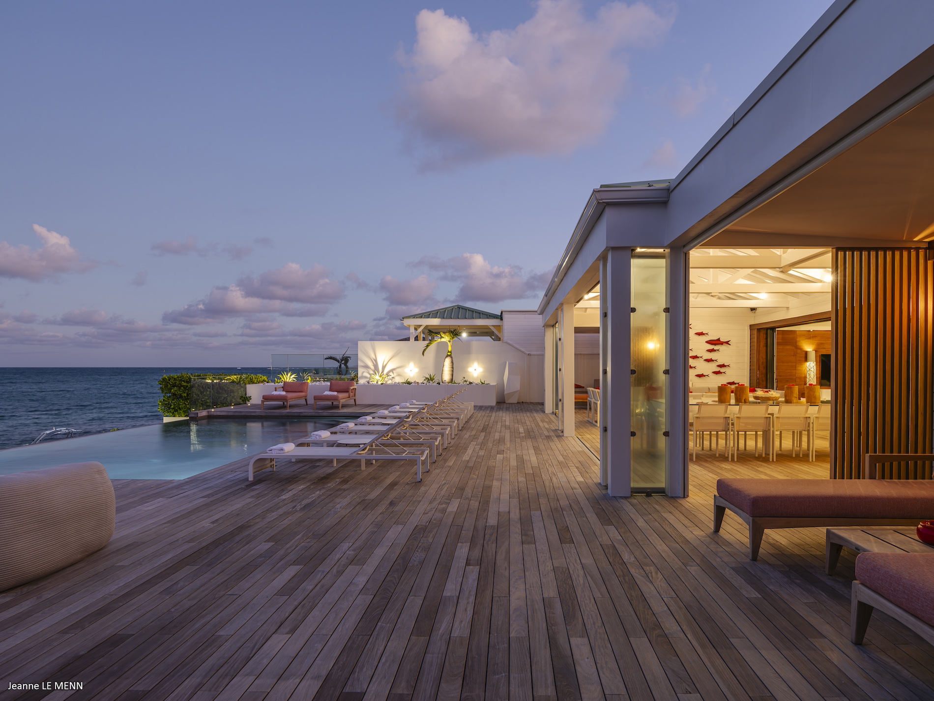 The villa itself is designed with contemporary furnishings and boasts a spacious wooden deck and a heated infinity pool that overlooks the ocean. Whether you're starting your day with a refreshing dip in the pool or unwinding in the evening while taking in the stunning sunset, the outdoor spaces provide the perfect backdrop for Caribbean living.