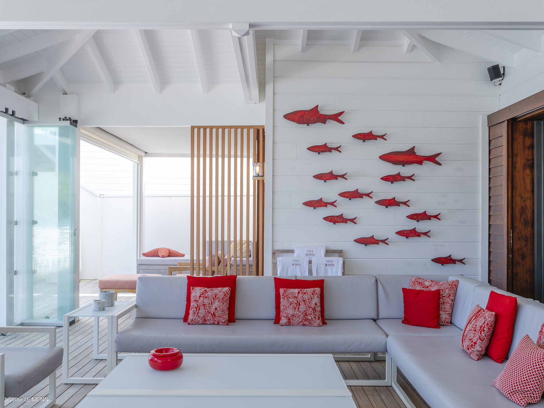 Villa Mapai is a stunning 6-bedroom villa located in the gated community of Terrasse de Cul de Sac. Situated in a picturesque oceanfront setting, the villa offers a luxurious and tranquil escape. Its prime location provides breathtaking views of Pinel Island and the cove around Cul de Sac, making it an ideal destination for ocean lovers.