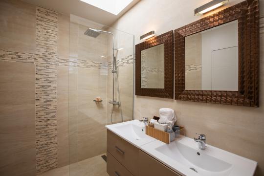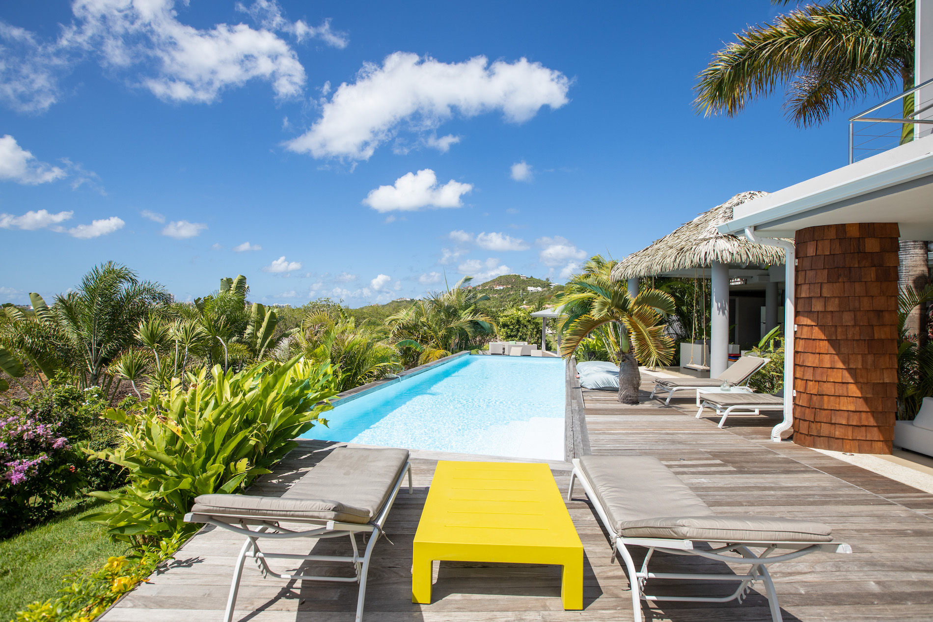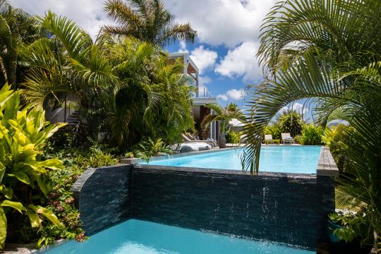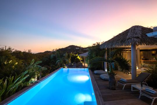 The pool's different shades of blue are breathtaking to behold, especially when the sunlight hits the water and reflects its colors. It's also wonderful that there's a small swimming pool that connects to the terrace on the lower level, making it easy to enjoy the outdoors and cool off in the water.The villa's pool is heated from October 15th to April 15th. Outside this period, pool heating is optional, at an additional cost of $350 per week.