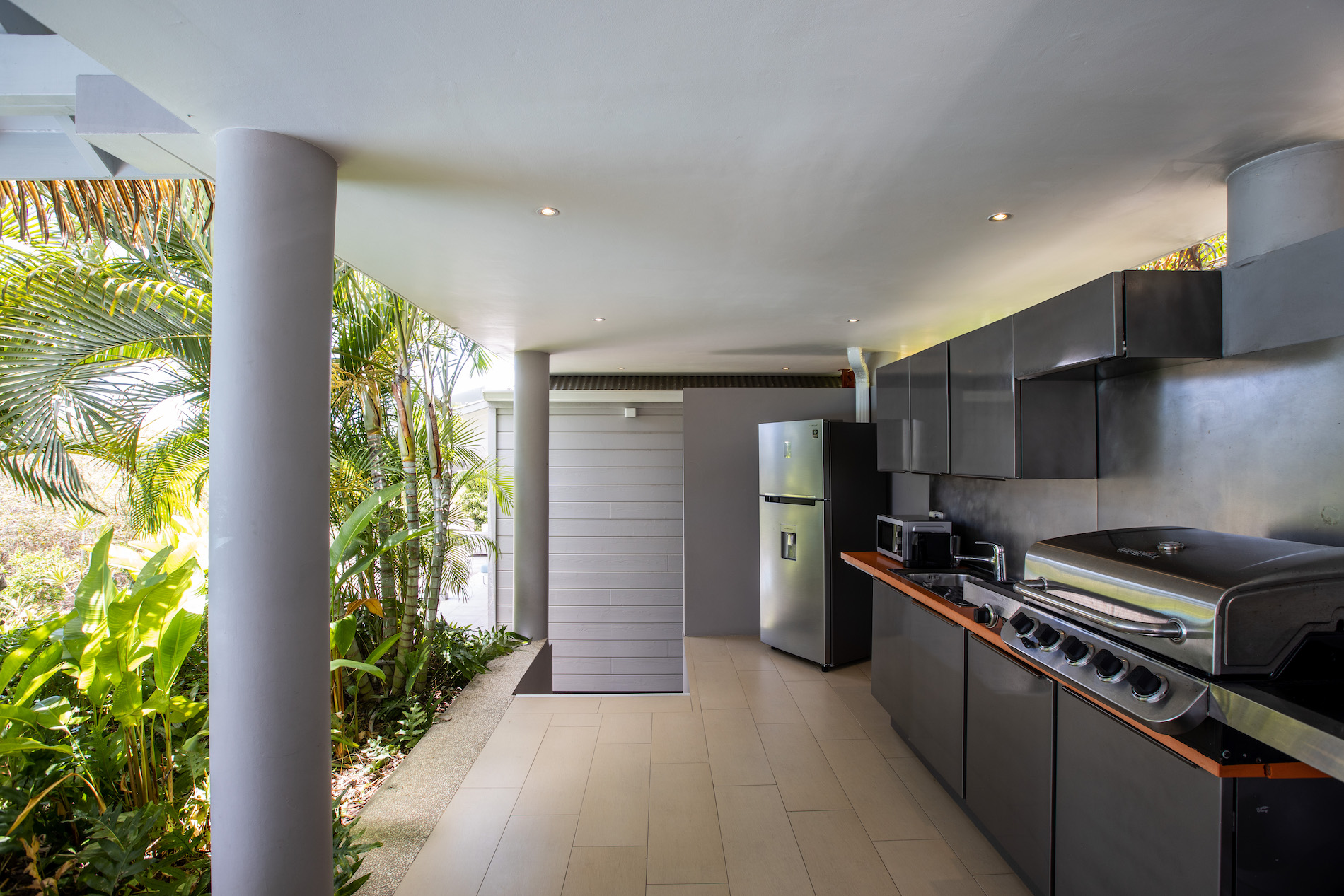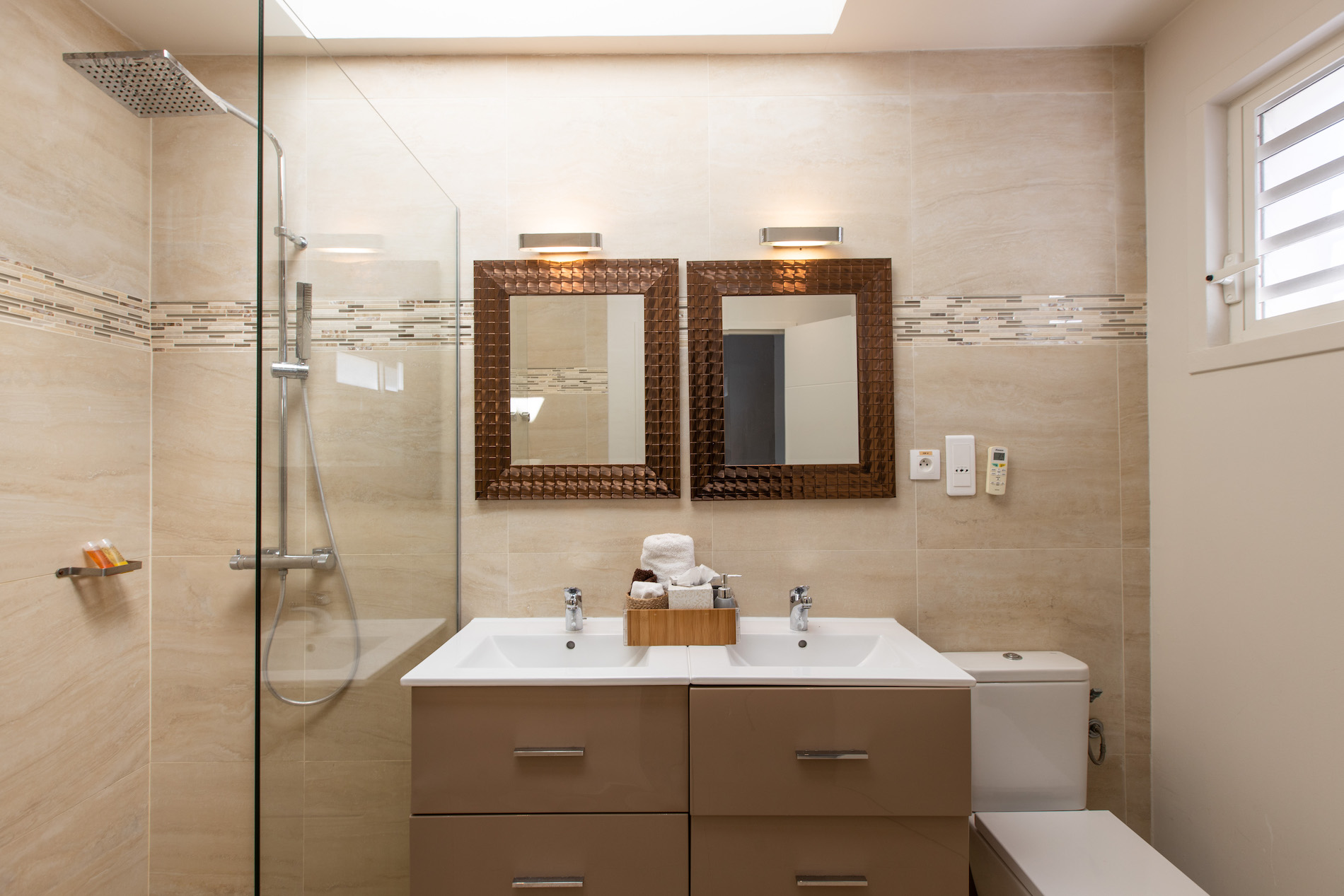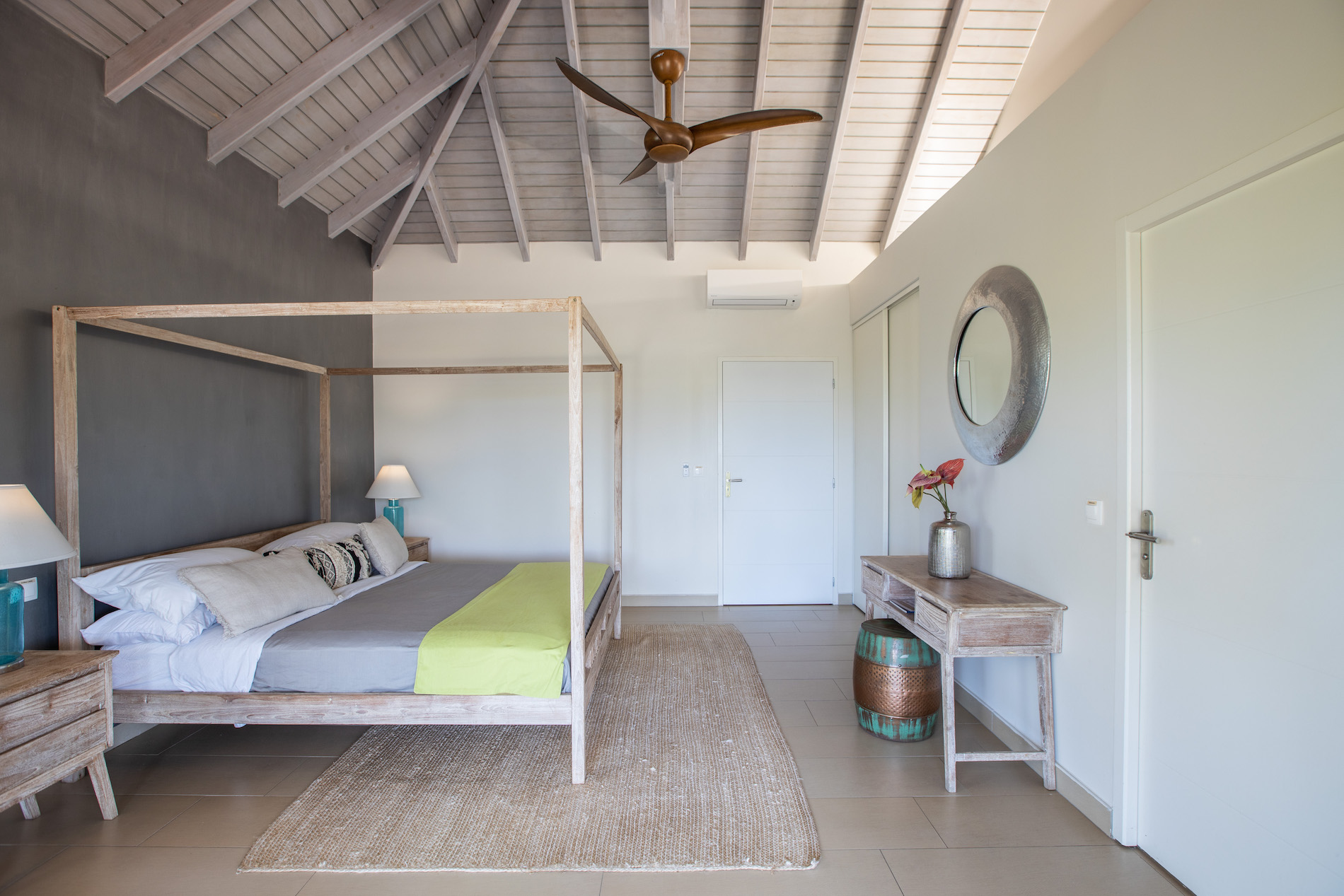 The four bedrooms are of equal size, one of which has an outdoor shower on its private terrace.