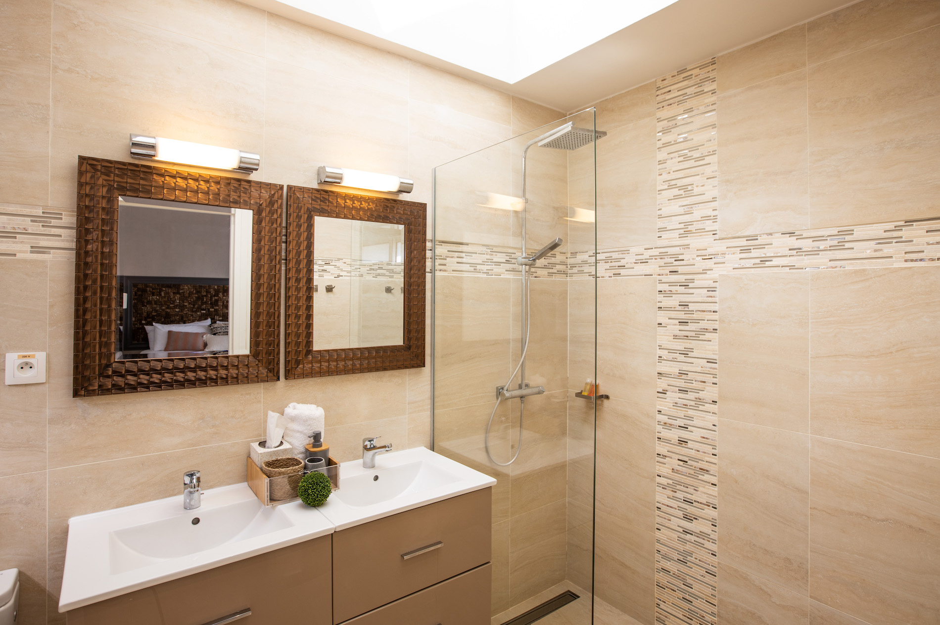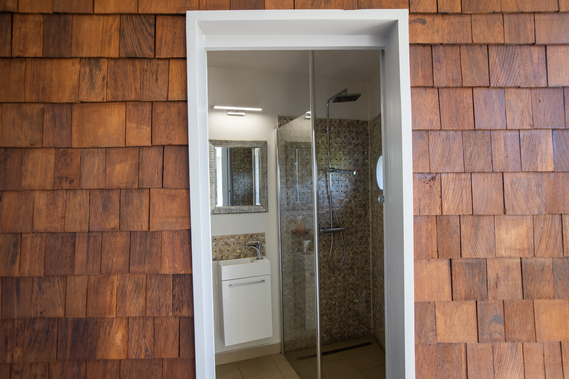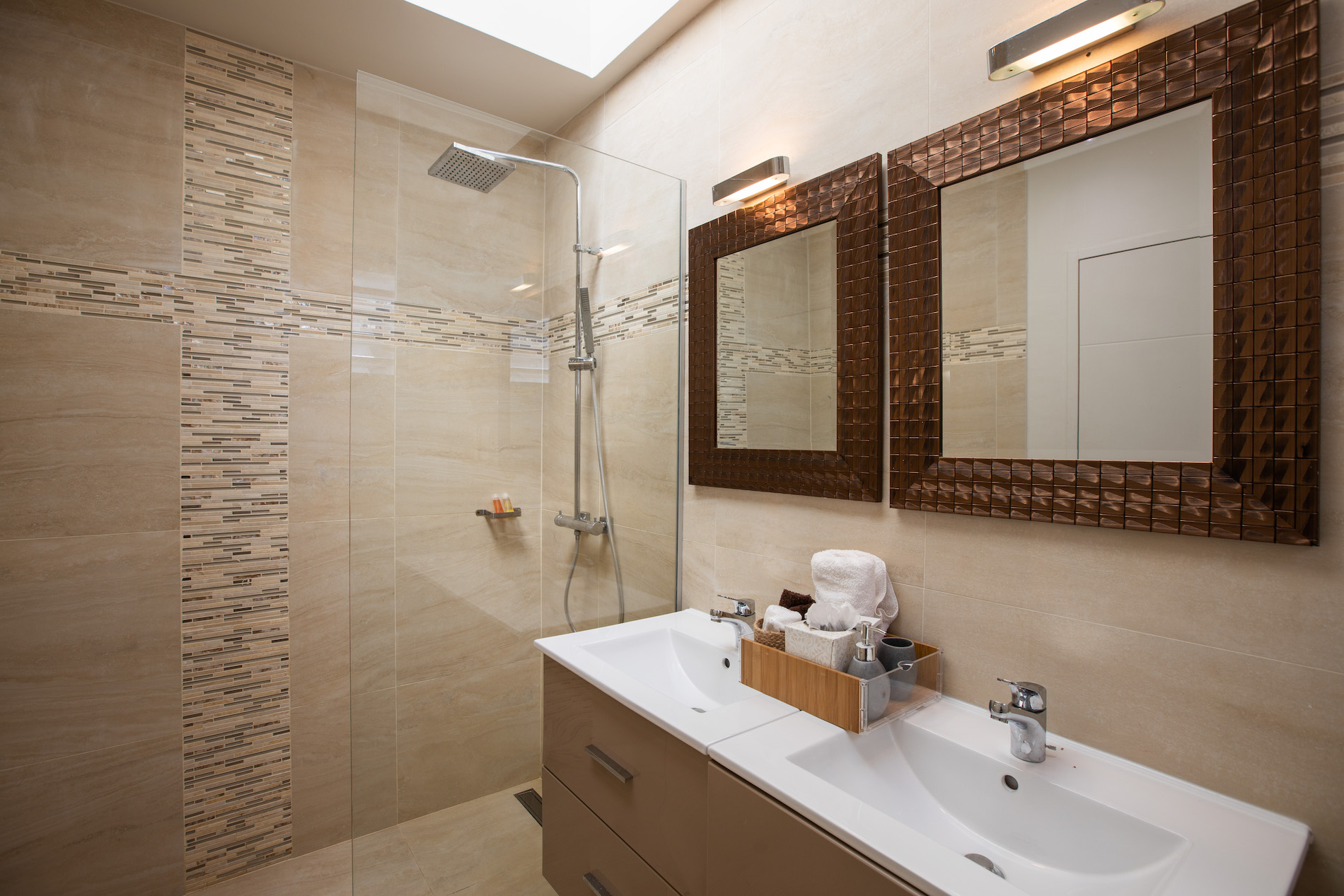The four bedrooms are of equal size, one of which has an outdoor shower on its private terrace.