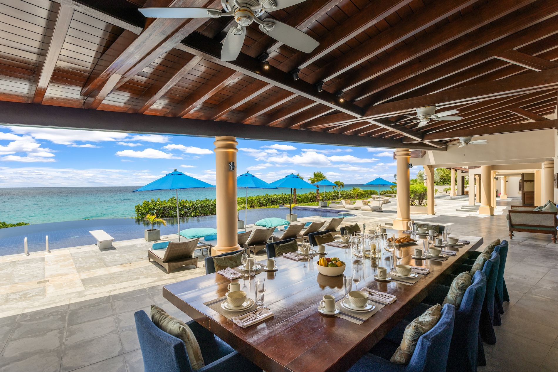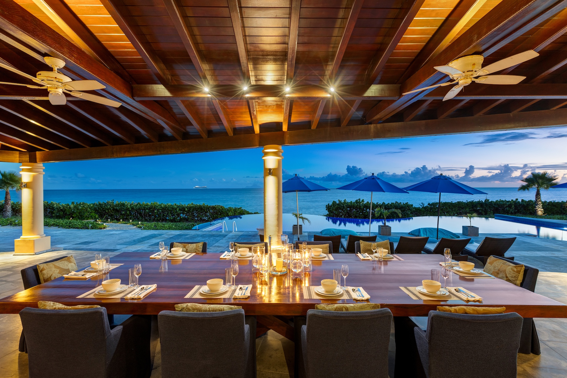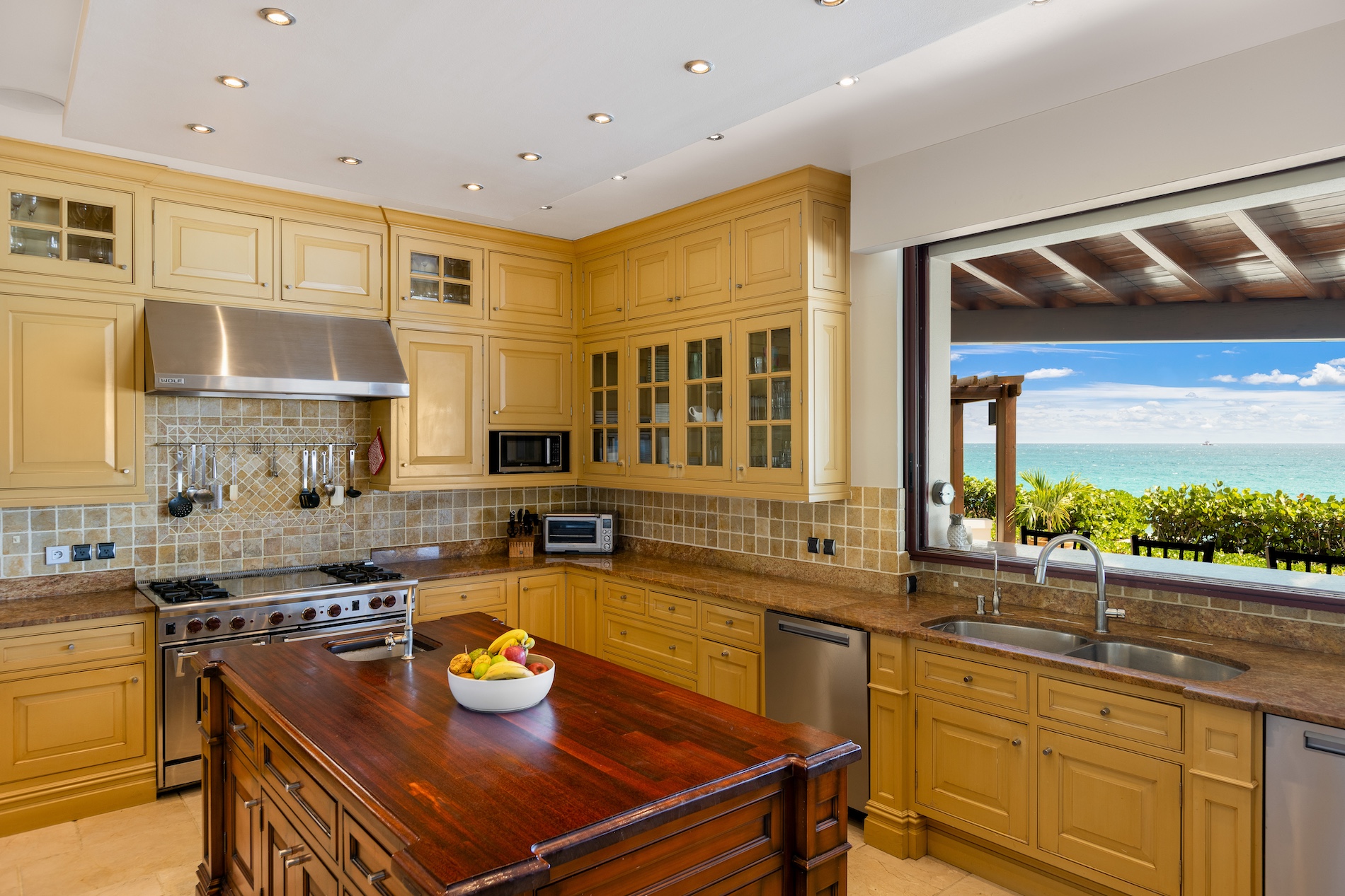 The large gourmet kitchen, attached to the Great Room, is a chef's dream. Guests may choose to enjoy the villa with or without chef service, depending on their preference. When included, the in-house Chef prepares three meals per day : breakfast, lunch, and dinner - cost of food and beverages additional.