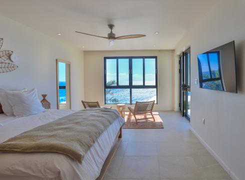 The villa's outdoor spaces are a testament to tropical luxury. Step onto the expansive terrace, and you'll find a mesmerizing pool that appears to blend seamlessly with the Caribbean Sea beyond. Ample lounging areas, including a covered al fresco dining space, invite you to soak up the sun, savor delicious meals, and relish in the island's natural beauty.