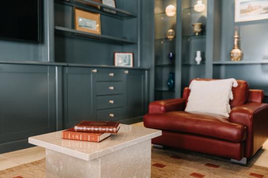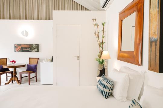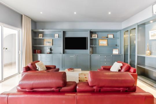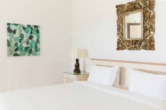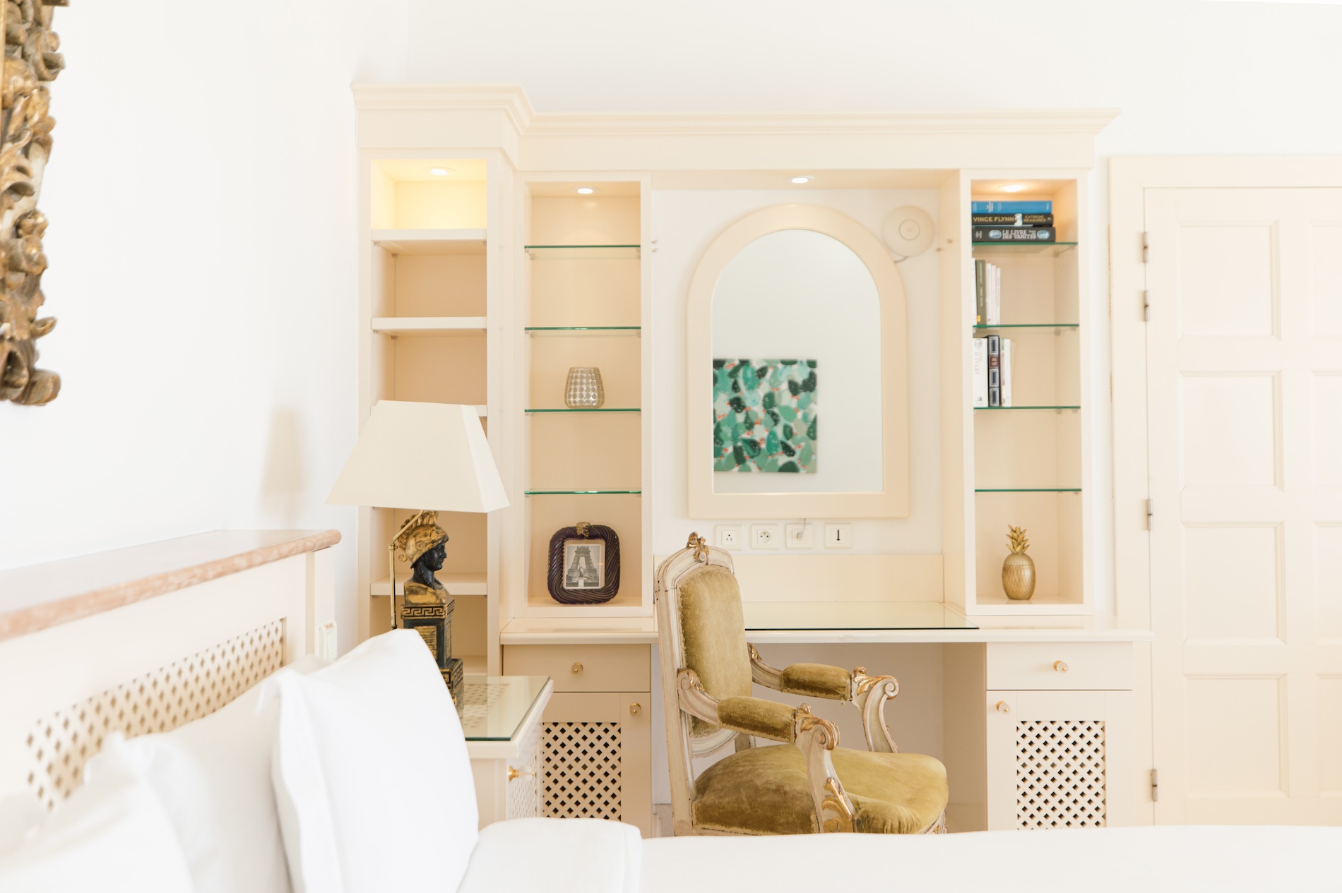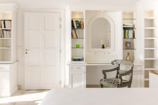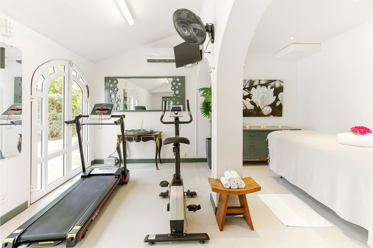 The villa also offers a private studio at the property entrance, providing an additional retreat for guests or staff. The studio is tastefully appointed, offering a comfortable living space.