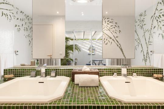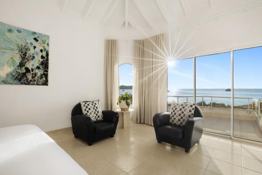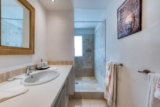 The villa, fully air-conditioned, boasts four impeccably designed bedrooms, each with a breathtaking view of the turquoise waters of the Caribbean Sea and the Rocher Créole. The master bedroom is located on the first floor, accessible from inside the villa. Each bedroom has an en-suite bathroom, one with an outdoor shower and three with a bathtub. The architectural excellence of Villa Petite Plage 4 is evident in its seamless integration with the natural environment, allowing guests to enjoy the beauty of Saint-Martin in the comfort of their own haven..