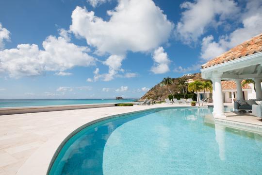 As you step into the villa, you are greeted by a spacious and beautifully decorated living area that opens up to an expansive terrace. Whether you choose to bask in the warm Caribbean sun, take a refreshing dip in the private infinity pool, or unwind in the jacuzzi or the shaded lounge areas, the outdoor spaces of Villa Petite Plage 4 are designed for ultimate comfort and enjoyment. The pool is heated between December 15th to May 1st.