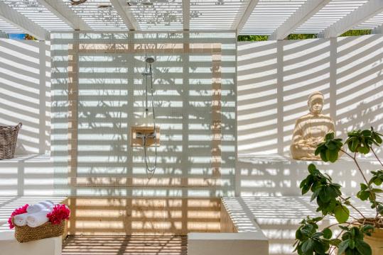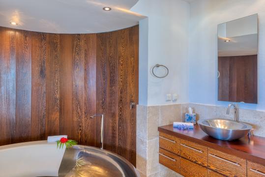 The villa's six bedrooms are sanctuaries of serenity, each offering a private oasis for rest and rejuvenation. High-end furnishings, luxurious bedding and panoramic views of the surrounding natural beauty ensure that every moment spent in these places of relaxation is a true delight. Whether contemplating the turquoise waters of the Caribbean from the comfort of your bed or enjoying the gentle breeze from a private terrace, the rooms offer an unrivalled experience of island luxury. Two of the bedrooms also have outdoor showers, and three of the bedrooms have a bathtub.