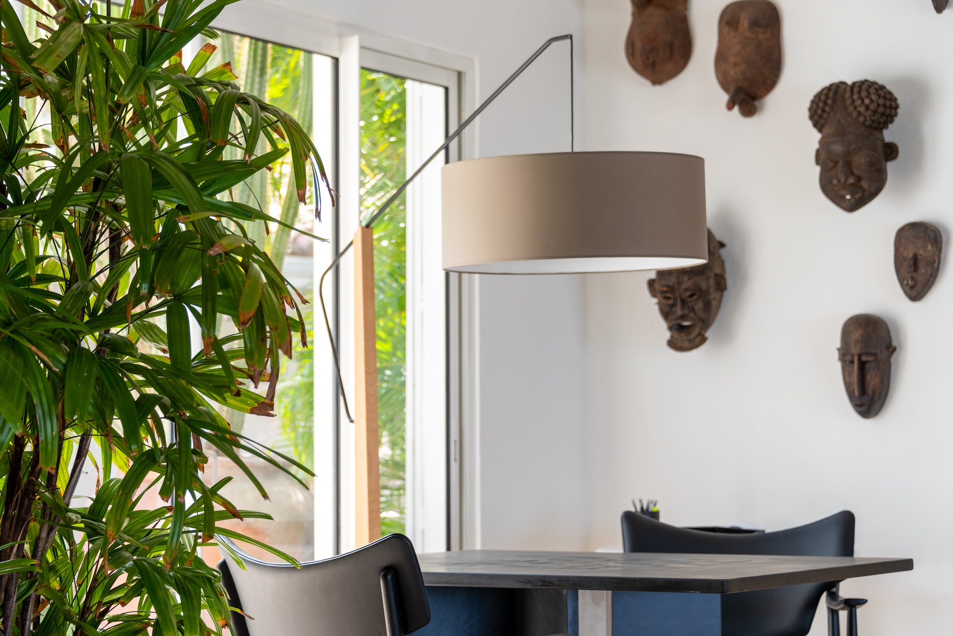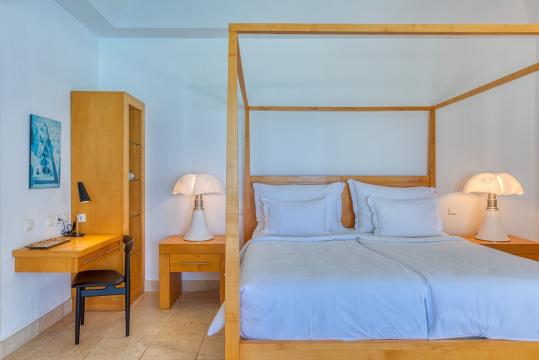The master bedroom is located upstairs, offering breathtaking views from its private terrace. While the sixth bedroom is a private studio located at the entrance to the property, providing an additional place of relaxation for guests or staff.