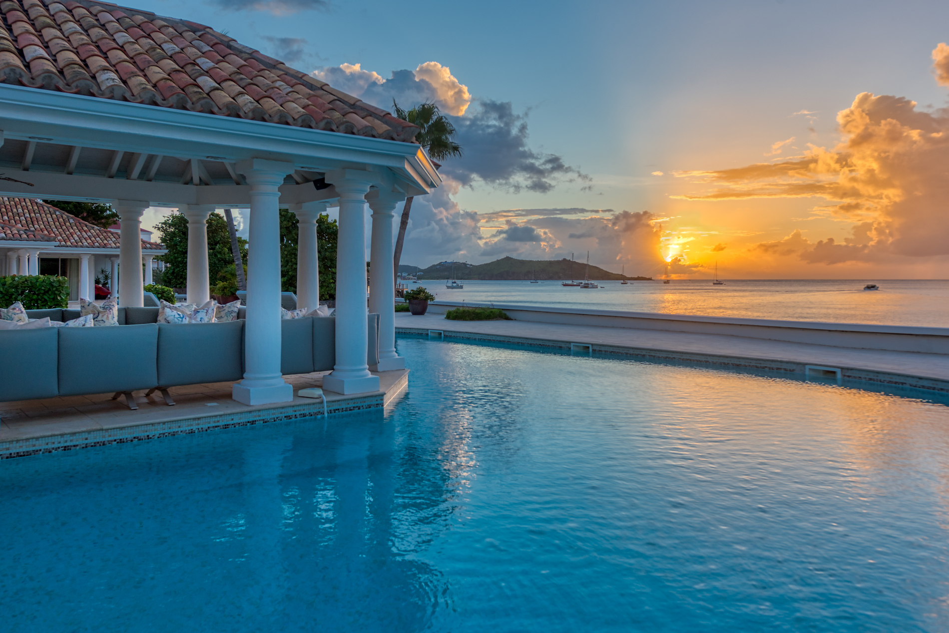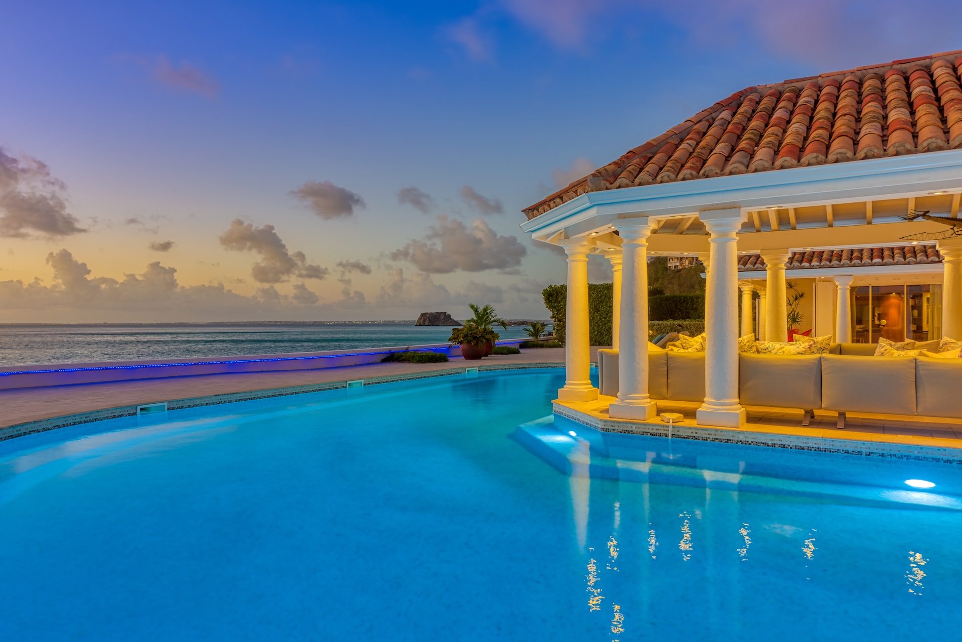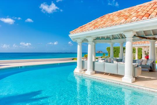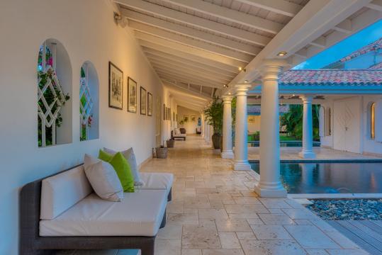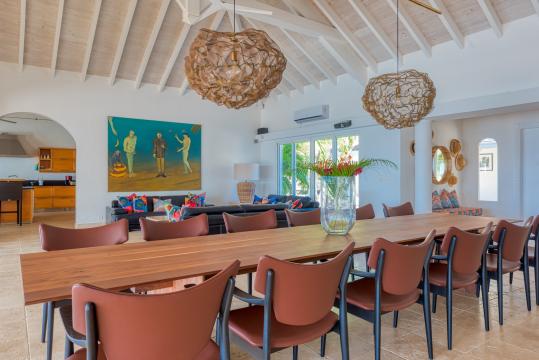 The appeal of Villa Petite Plage 5 extends beyond its walls, as outdoor spaces invite guests to enjoy the island's tropical ambience. A private infinity pool overlooks the sandy shores, inviting you to cool off while taking in the breathtaking scenery. The pool is heated between December 15th to May 1st. Numerous relaxation areas, such as the sea-facing Jacuzzi, which offers the ideal setting for intimate conversations, as well as sunbathing to unwind with a captivating book.