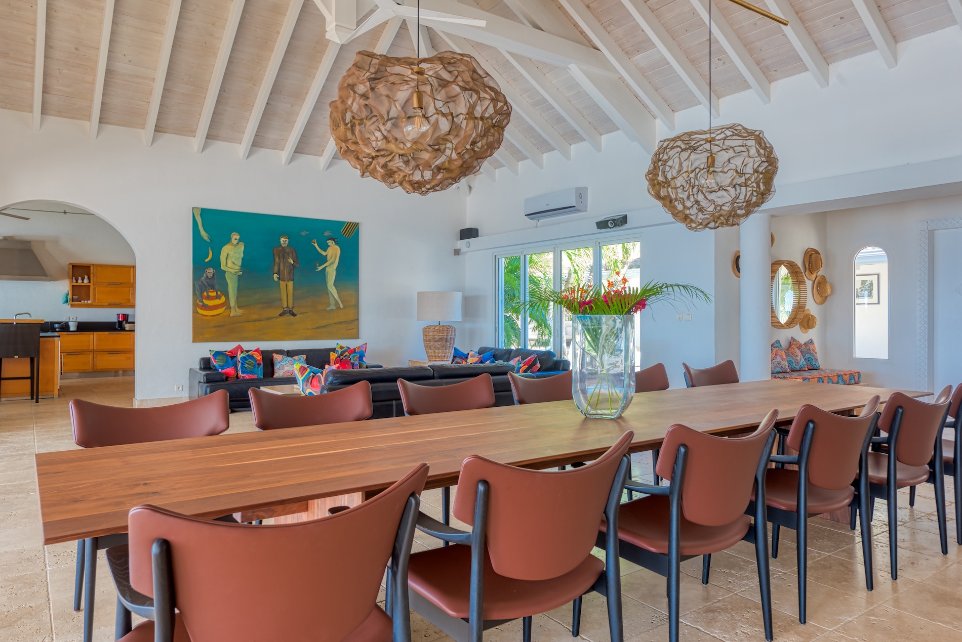For those who prefer shared experiences, the villa fully air-conditioned, offers spacious communal areas where guests can gather for meals, entertainment, or simply to revel in each other's company. The fully equipped kitchen, designed with both functionality and style in mind, serves as a focal point for culinary enthusiasts to create and enjoy delectable meals together.