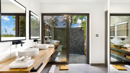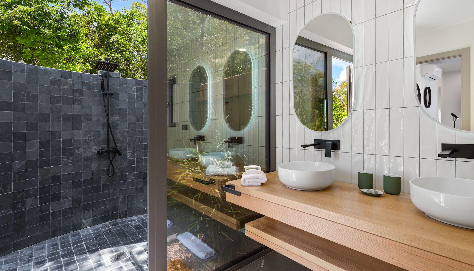 Indulge in the comfort of individual private bathrooms for each bedroom, complete with outdoor showers, air conditioning, smart TVs, king-size beds, and secure safes.