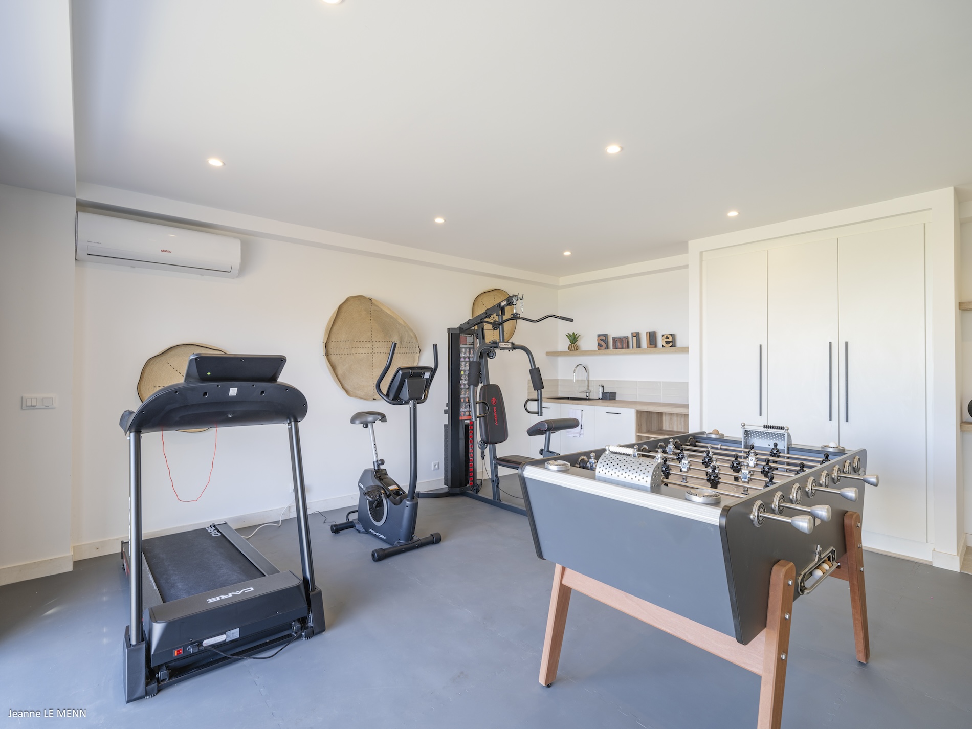 To enhance your stay, the villa offers premium leisure and wellness amenities. A fully equipped gym and a pétanque court complete the property, providing inviting spaces for moments of relaxation and conviviality with family and friends.