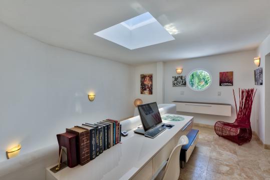 The villa also features a fully equipped kitchen, air conditioning throughout, a workspace with a computer and printer, and housekeeping service to ensure a comfortable and carefree stay.