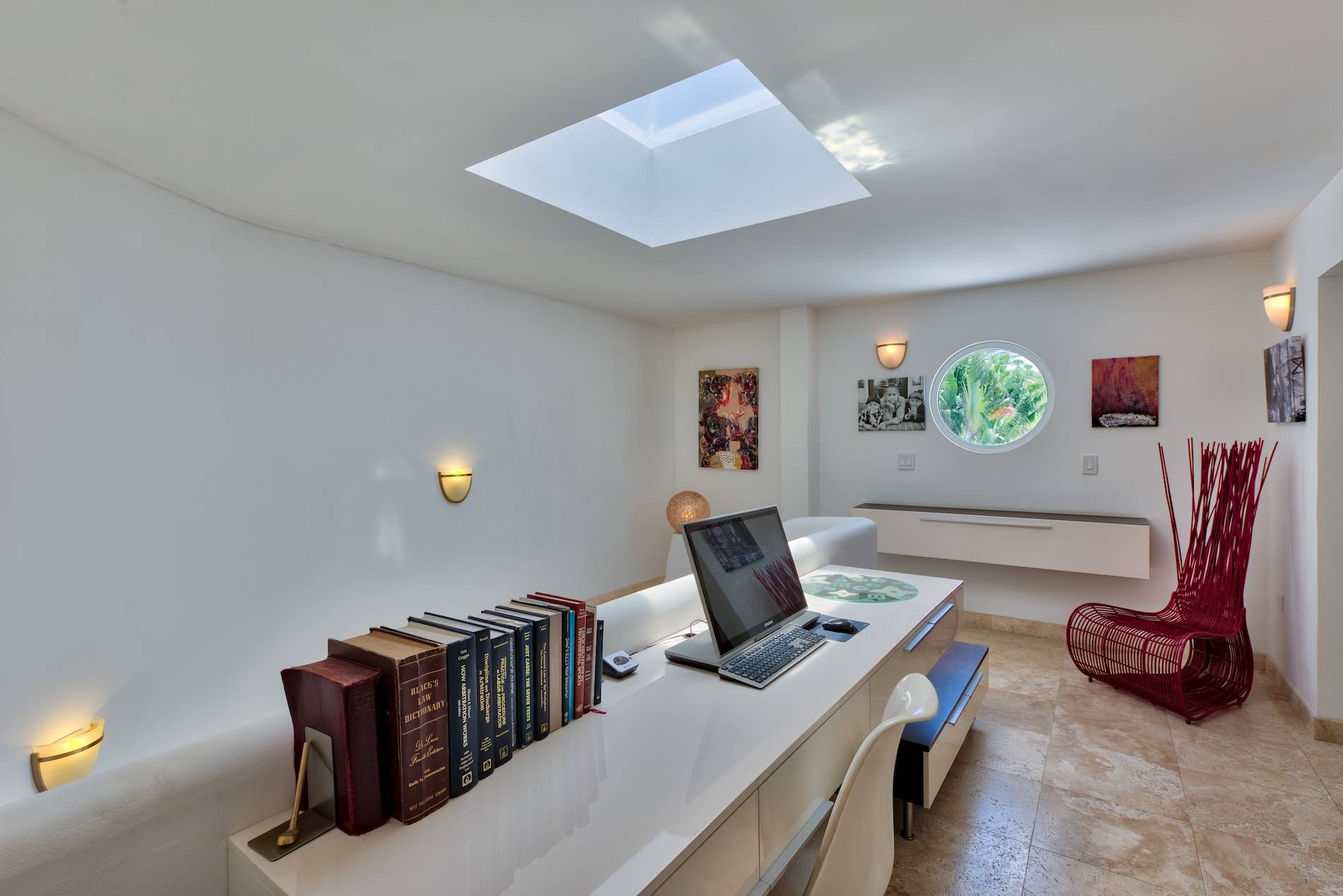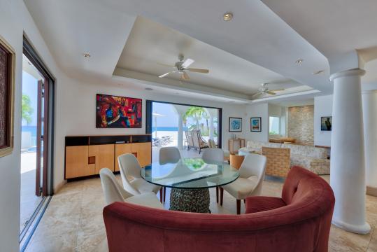 The outdoor areas invite relaxation with a private pool, a spacious terrace, and privileged access to Cupecoy Beach, known for its golden cliffs and crystal-clear waters, ideal for swimming and snorkeling.