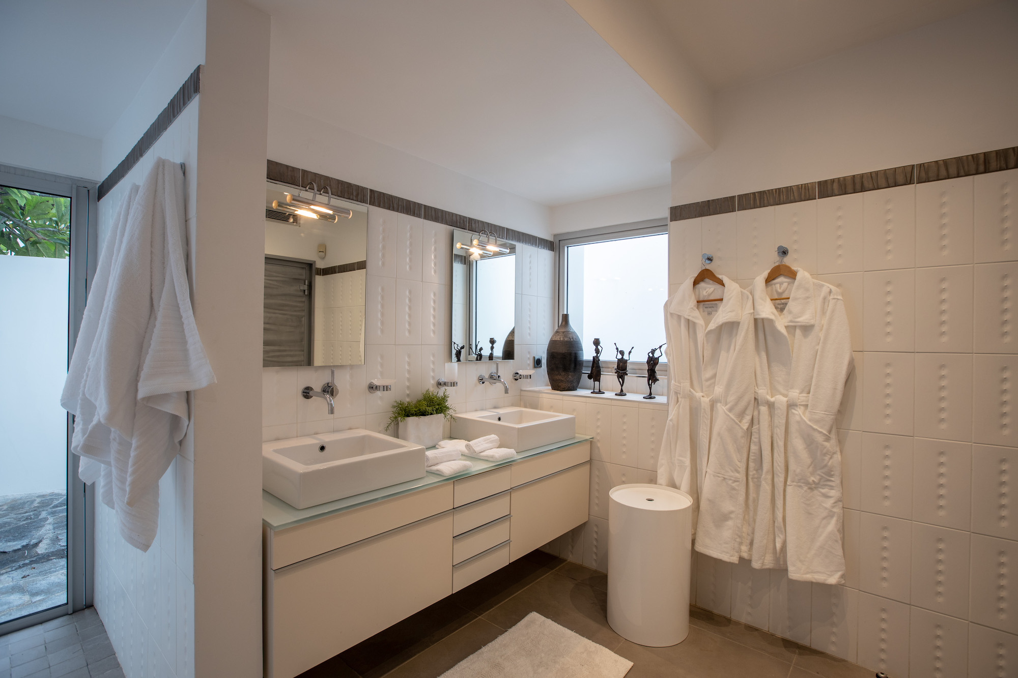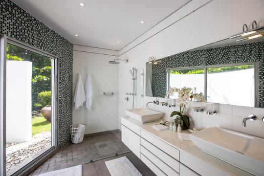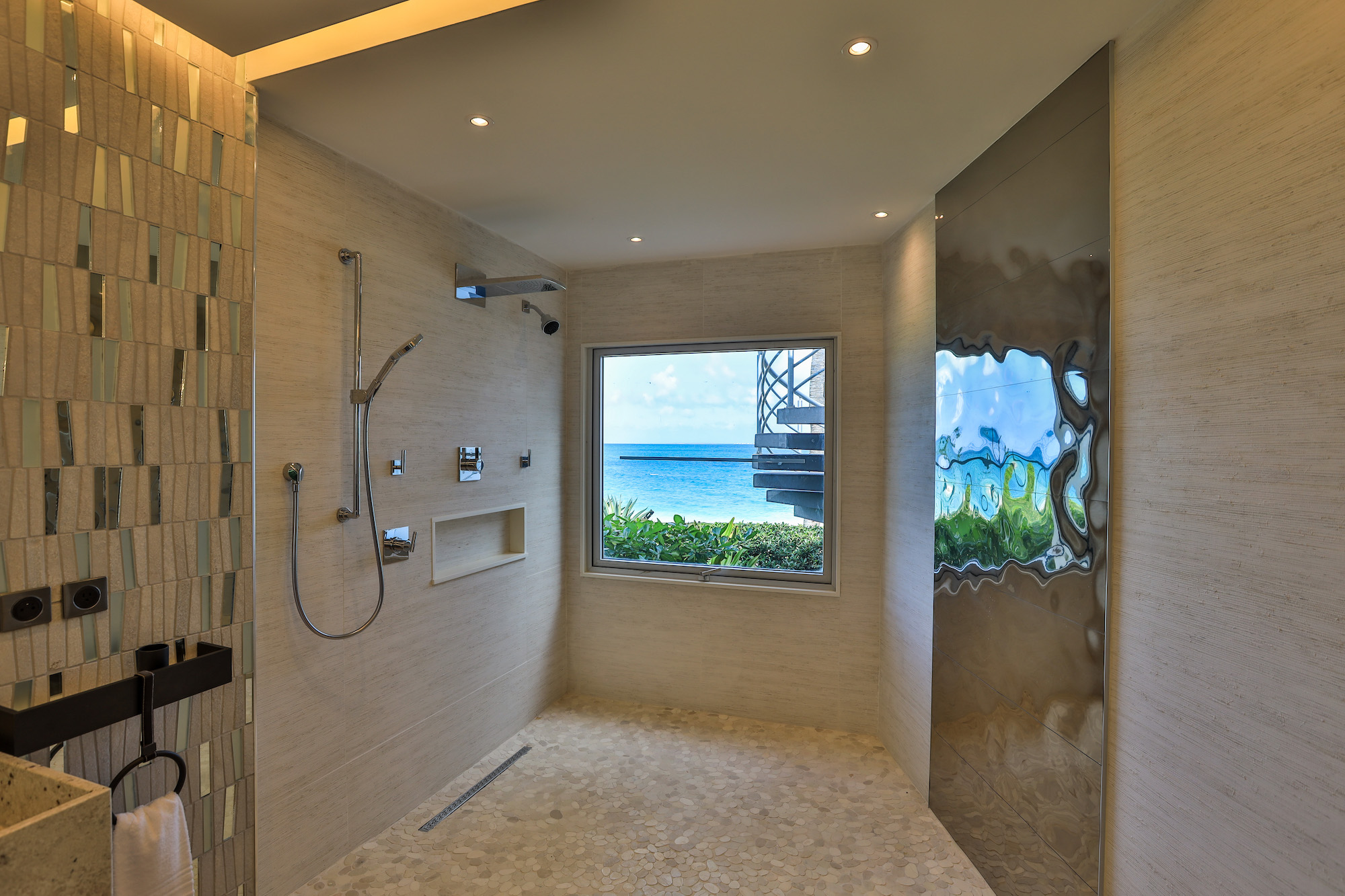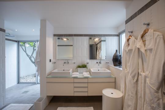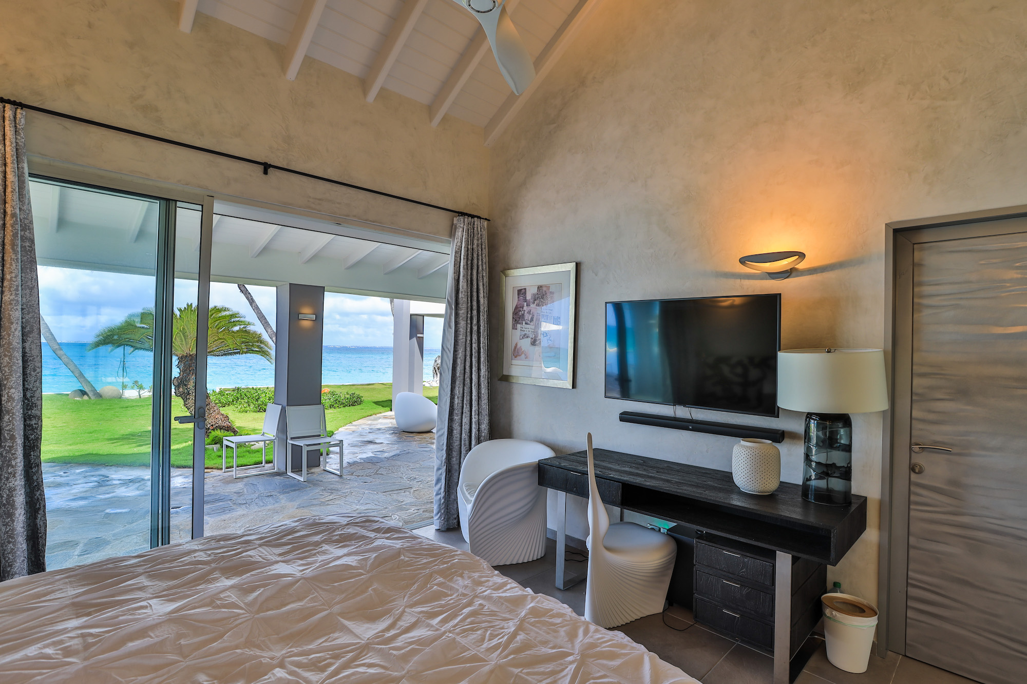 Each of the six bedrooms in the main house offers breathtaking ocean views and is equipped with its own en-suite bathroom. The seventh bedroom is located in a separate wing, providing added privacy and seclusion.