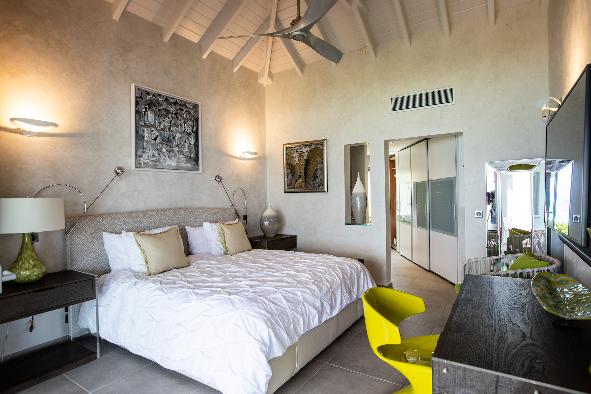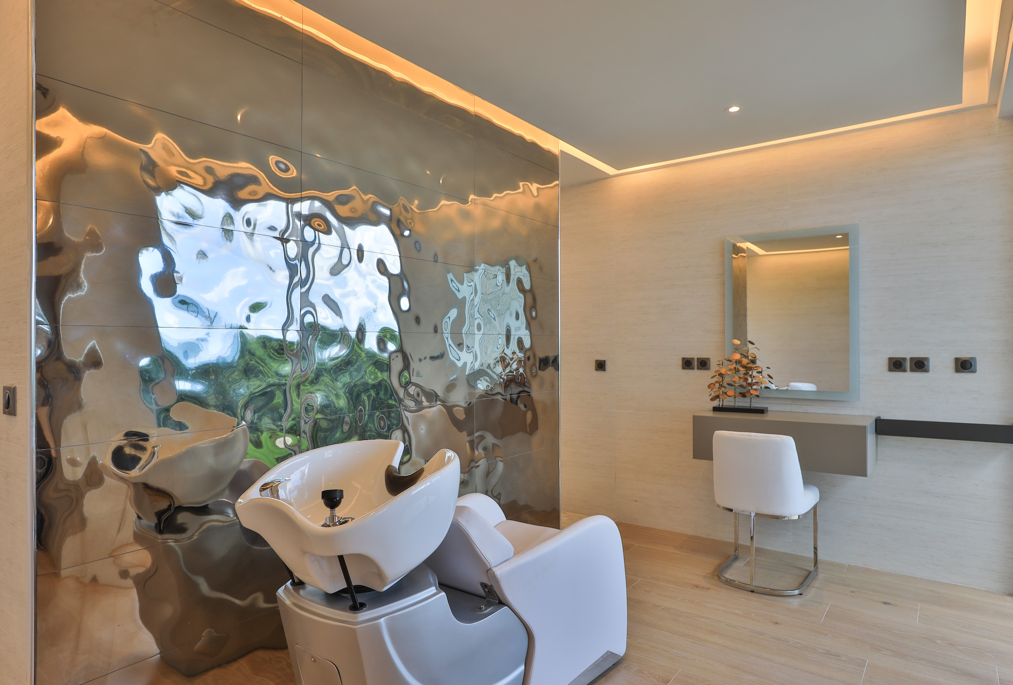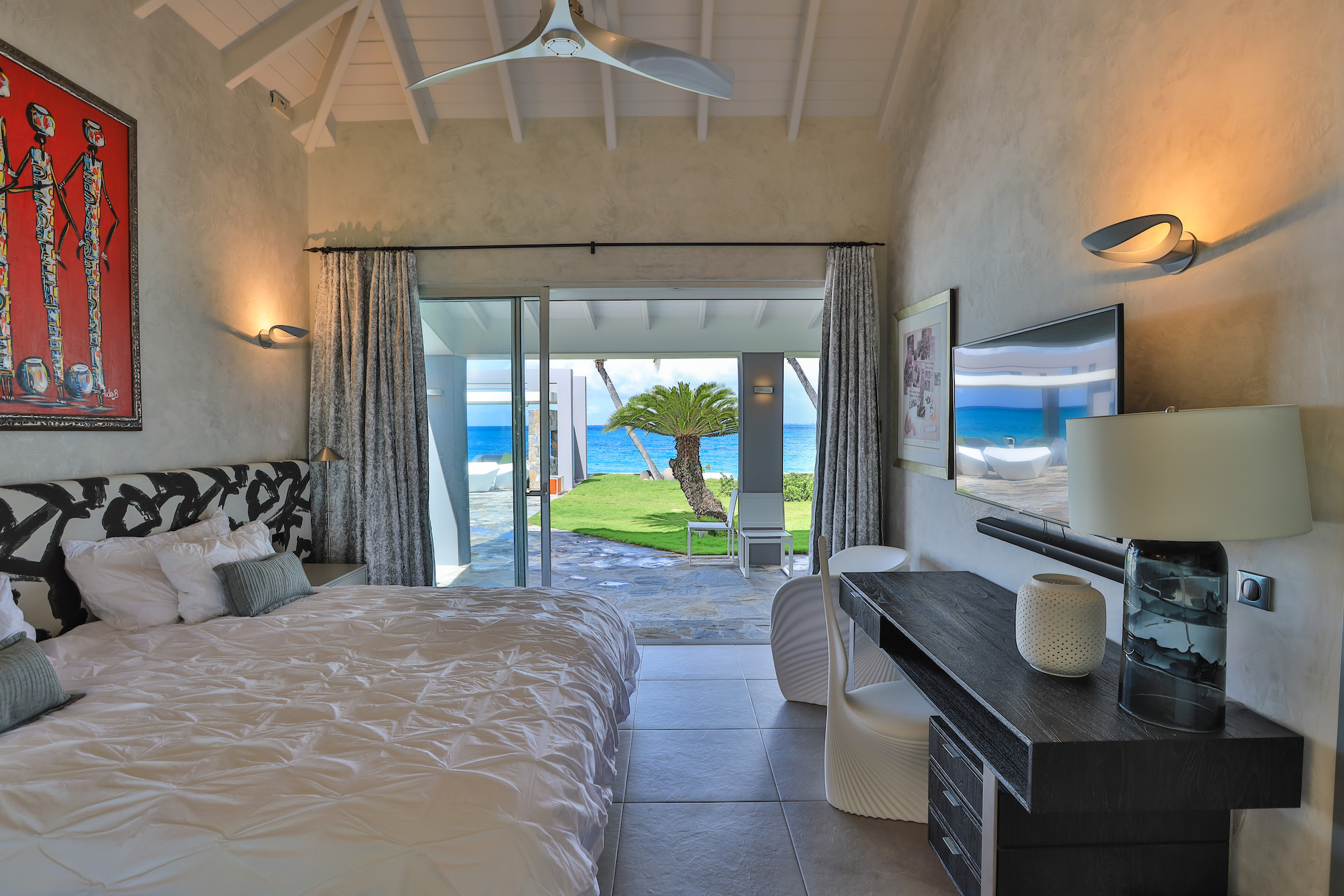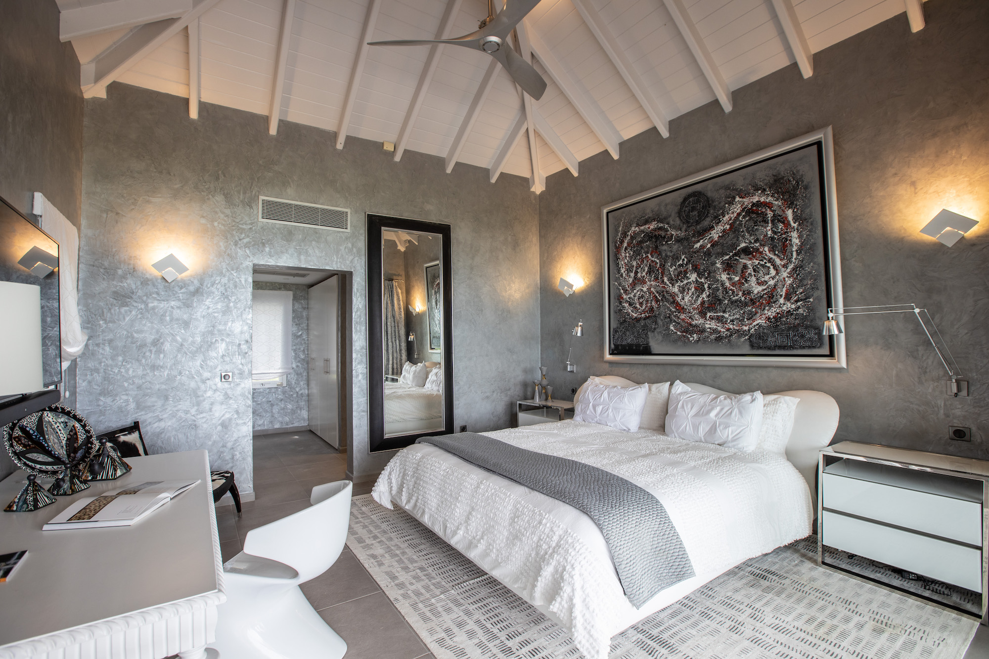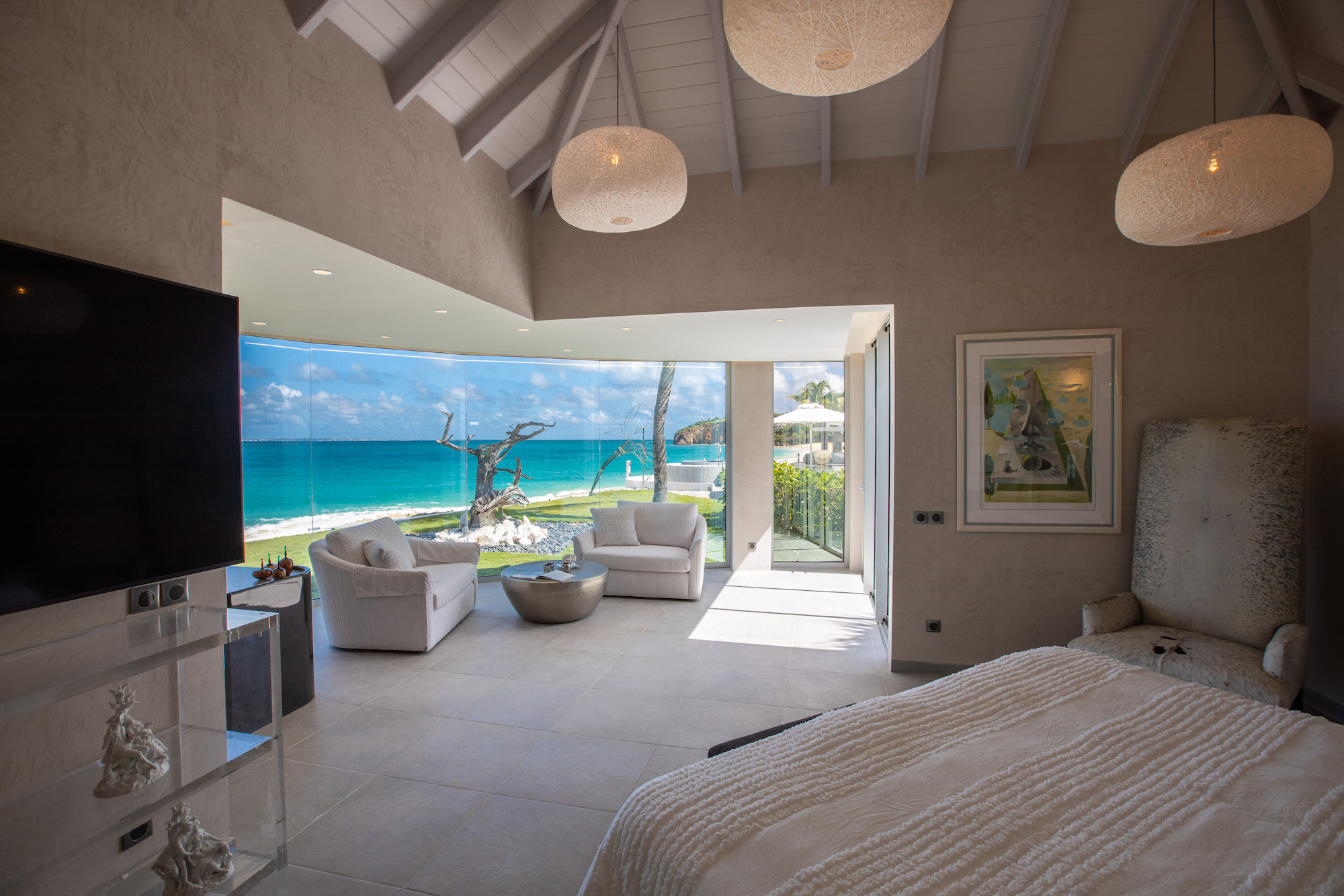 The interiors of Villa Le Reve are glamorous and impeccably designed, creating a sophisticated and elegant atmosphere throughout the property.