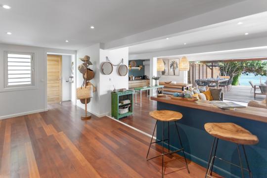Perfect location for our group of 7, with room to spare. Plenty of restaurants, grocery etc. within few minutes. Orient beach, Grand Case and Anse Marcel beaches all less than 10 minute drive away. A highlight for us was large covered outdoor space with dining table, comfortable couches for relaxing and pool deck with amazing views of bay and Pinel Island. Kitchen is well furnished with has everything needed to make a nice dinner in if you wish. Bedrooms are spacious and very clean on our arrival with two cleanings from housekeeper during our one week stay. The patio and pool area feels very private from neighbors with hedges on all sides. There is private dock with with direct access to the bay and kayaks. The concierge even arranged for a private boat meet us at dock and ferry us across to the Island for a day where is there are beach bars and restaurants (recommend Karibuni for lunch). The concierge was very friendly and attentive with regular check-ins.Highly recommend! Hard to have made it any better! Maybe a hammock in the backyard? What an amazing place - thanks so much! - Mr F, April 2023