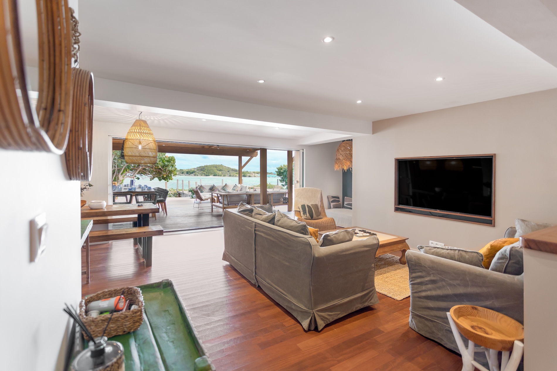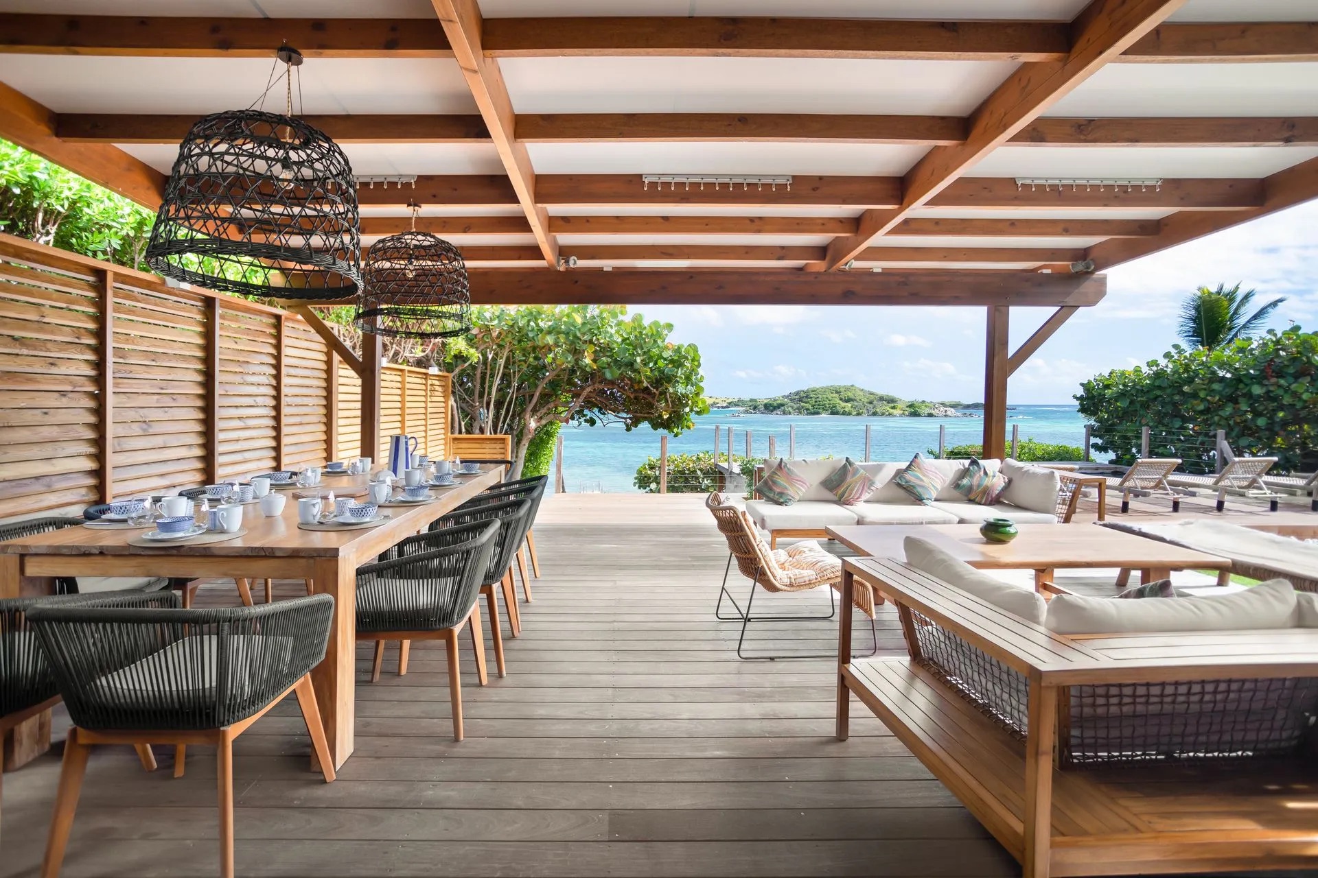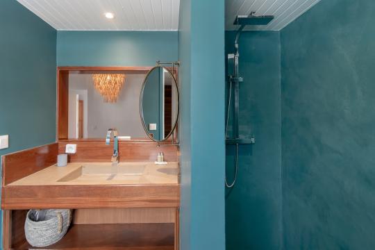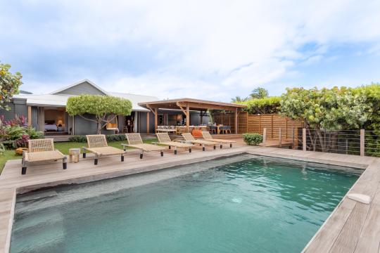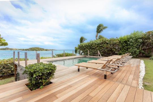 The swimming pool at Villa Baltazar is strategically positioned to offer a 360° angle view of the bay of Cul de Sac. From here, you can enjoy the breathtaking scenery, with the islet of Petite Clé just a few meters away.