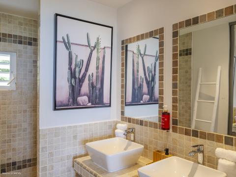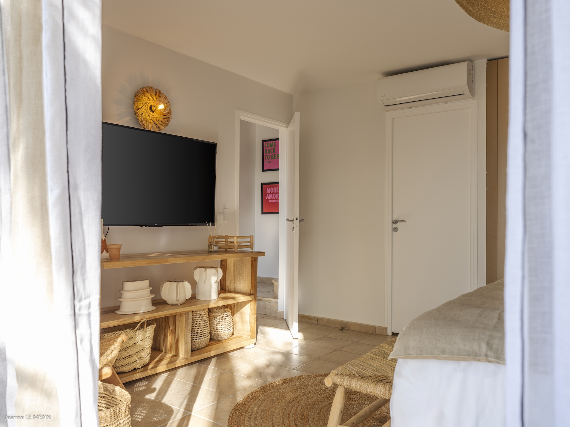 Designed across two levels, Villa Chez Paulette captivates with its contemporary design and spacious layout. Upon arrival, a bright and airy living area opens onto a large terrace, perfect for admiring sunsets or sharing unforgettable moments with family and friends. On this same level, a stylishly appointed bedroom ensures both comfort and convenience, close to the communal living spaces.