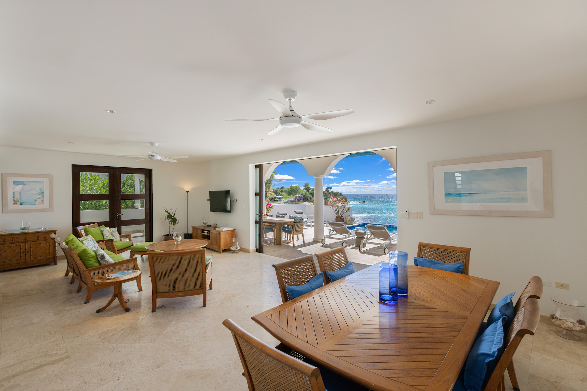 One of the main highlights of Villa Étoile de Mer is its easy beach access: a short private path leads directly to the shoreline, making it convenient to enjoy the sea without needing to drive. Cupecoy is also known for its scenic cliffs, small coves, restaurants, shops, and its proximity to Maho and Simpson Bay, making the location particularly practical for visitors.