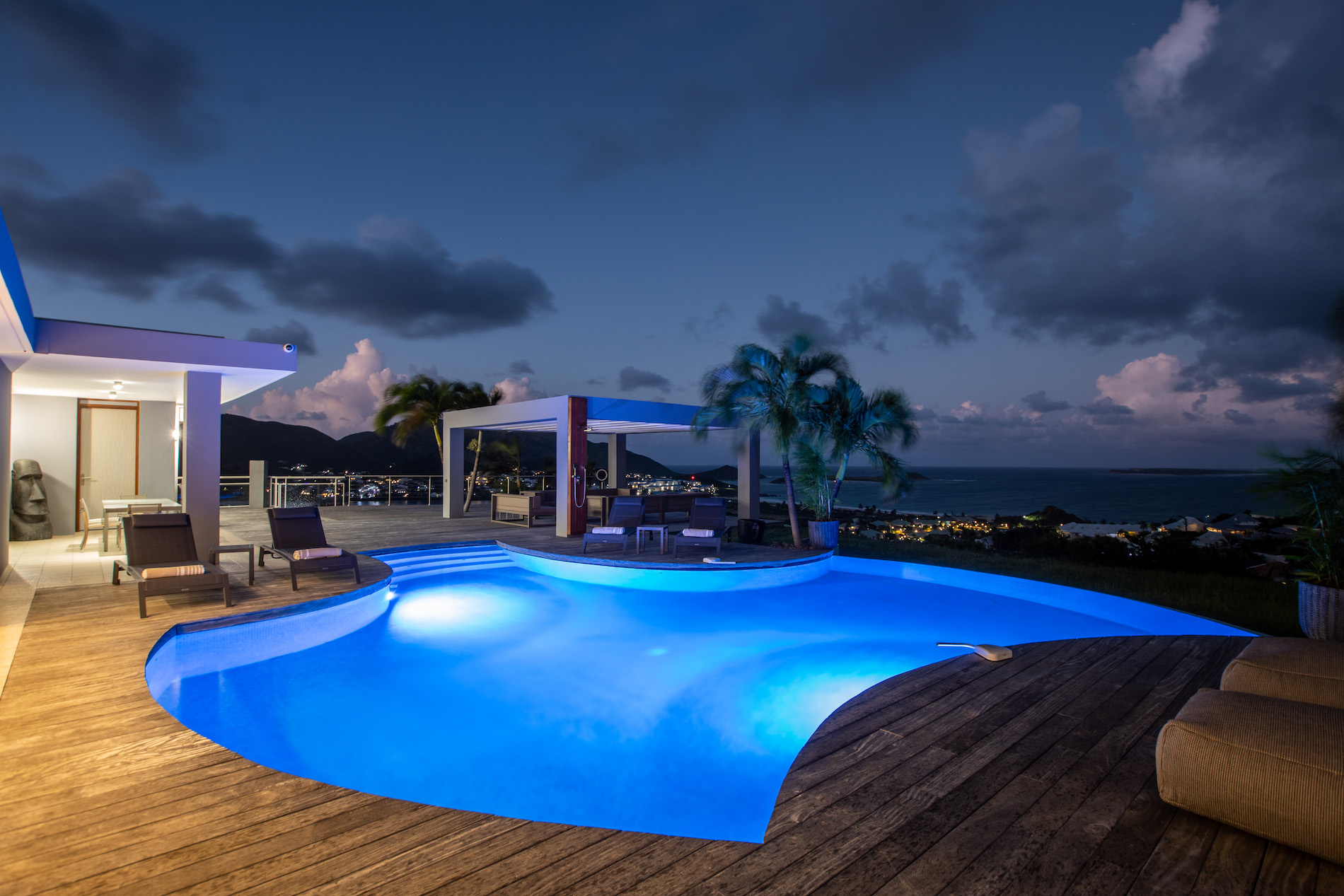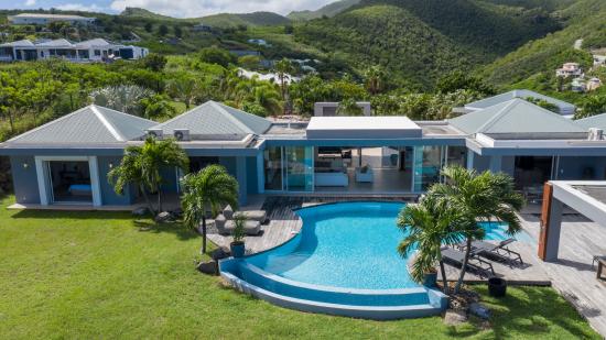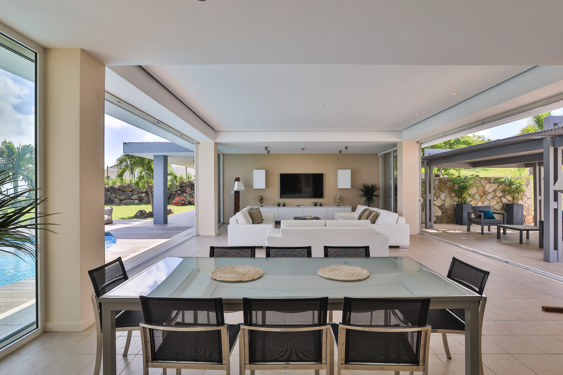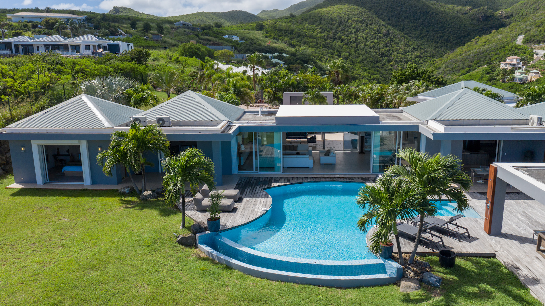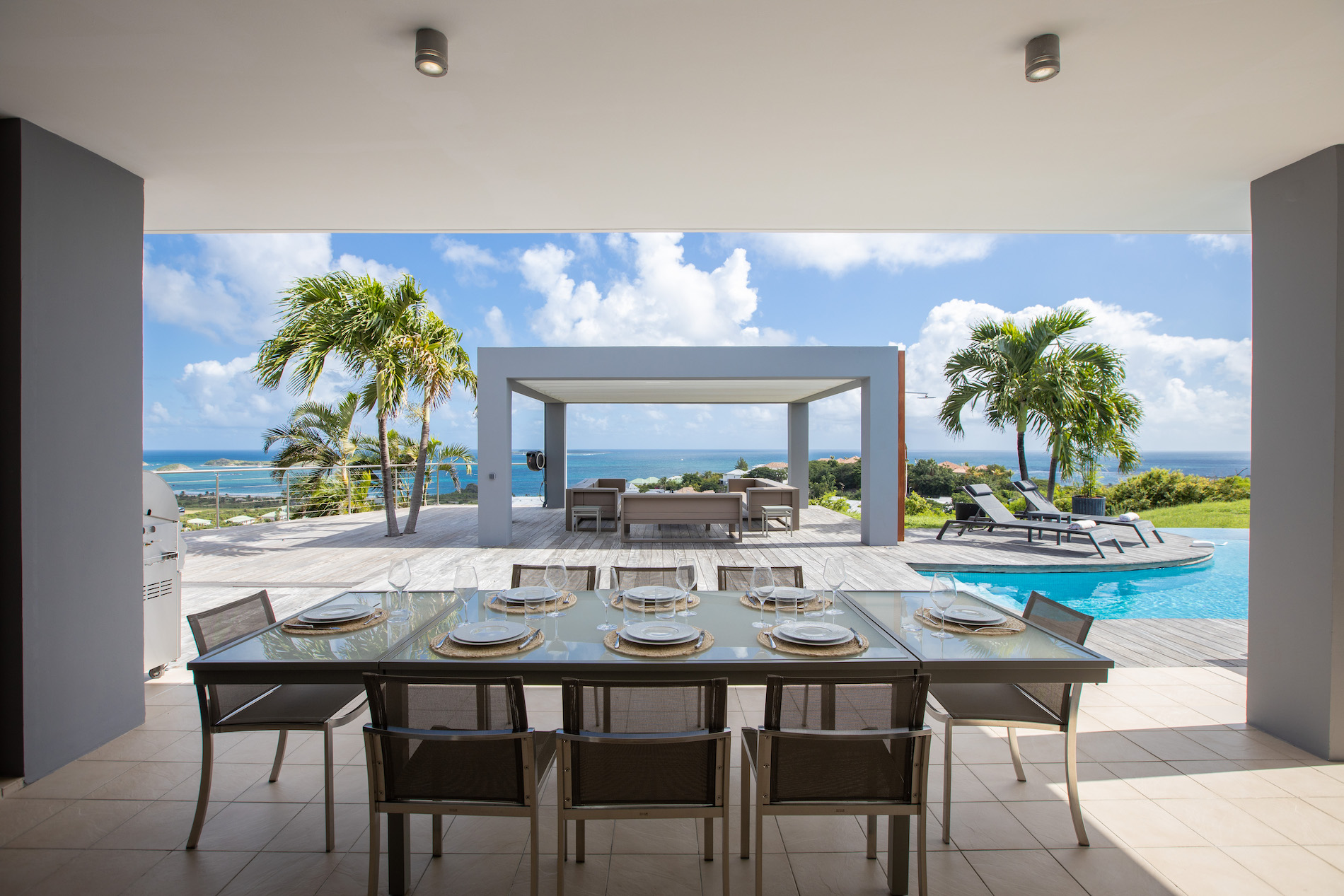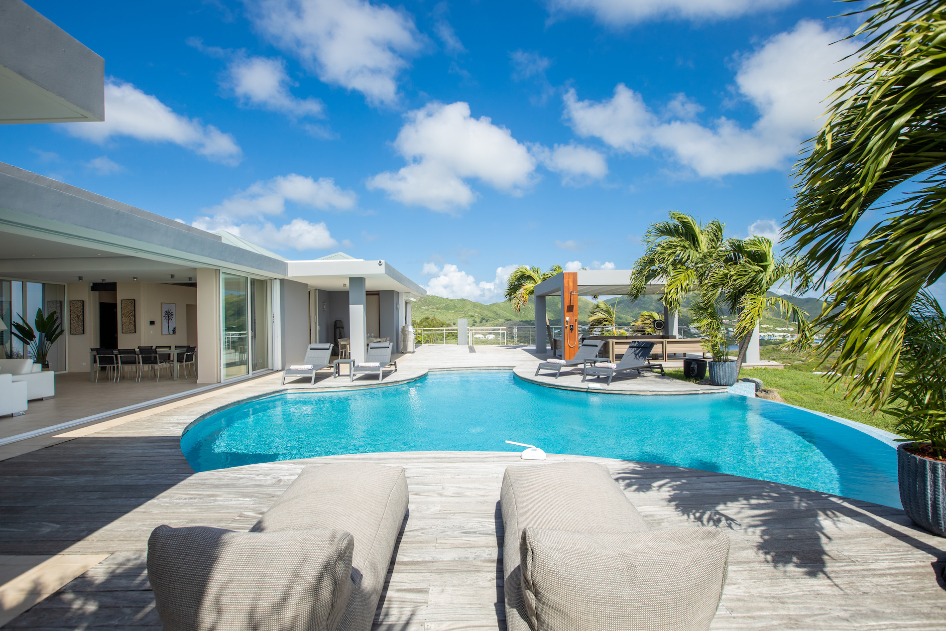 This beautiful, recently renovated, contemporary 4 bedroom villa is the perfect place to vacation in St. Martin and enjoy the island life. Upon entering the villa, the incredible panoramic view dazzles with tropical mountains and the endless blue sea and sky.