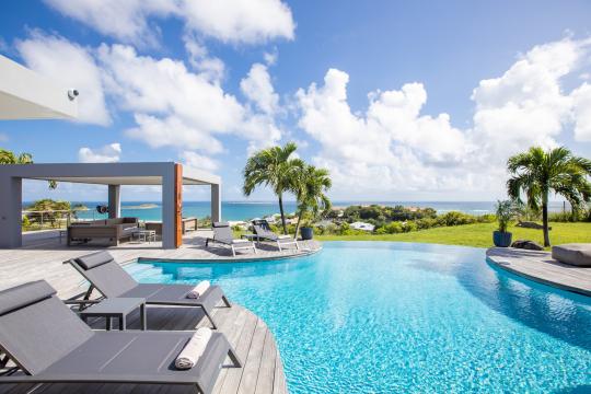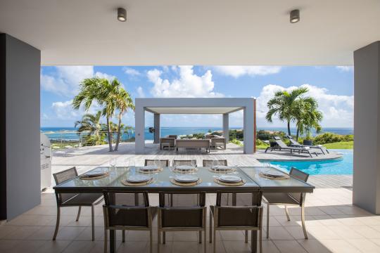 Located on the heights of Orient Bay, Villa Karukera offers a breathtaking 180° view of Orient Bay, Anguilla and St. Barts in the distance.