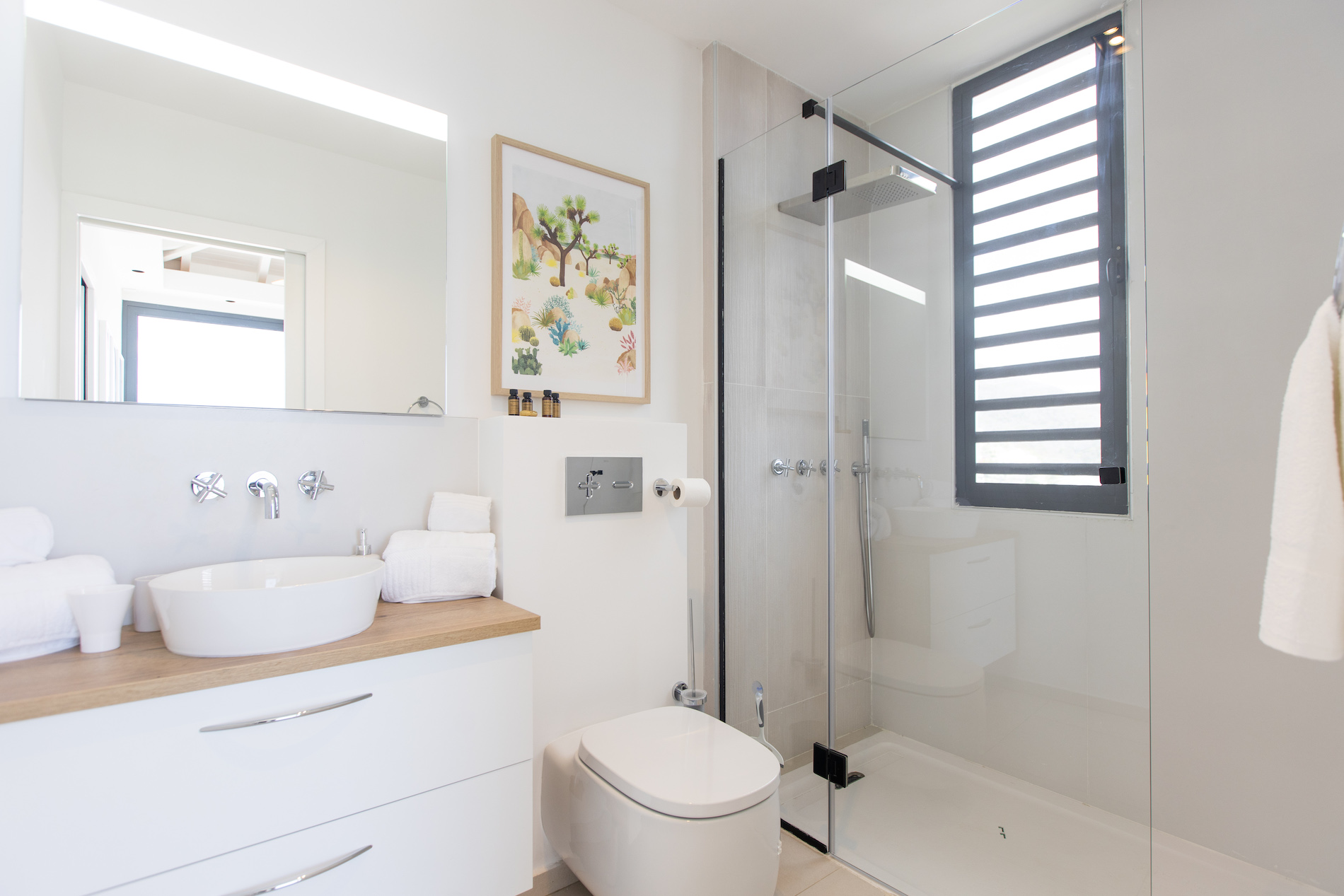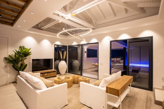 Beautiful villa in the Les Terres-Basses community. Exactly as described however note that 2 bedrooms are only accessible from outside the main villa, downstairs. The Villa and rooms look just like the pictures. The pool was clean and warm. Our host Mehdi was responsive, attentive and friendly. The Villa had transportation To and From the airport and also stopped at the rental car lot with us while we rented vehicles for our group. We were provided with private chef recommendations and the chef was amazing, he delivered breakfast for us in the morning and cooked our anniversary dinner on site. We had some small issues with electricity and housekeeping but our concierge Mehdi was always available and responsive to all our needs. Overall this villa is an absolutely gorgeous villa with breathtaking views for a large group. My friends and I were very happy with our stay and would absolutely come again. - Mr. W, August 2024
