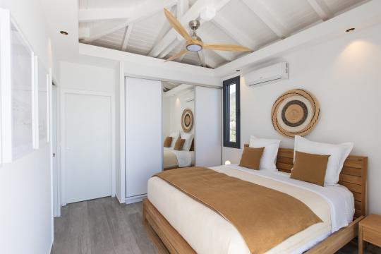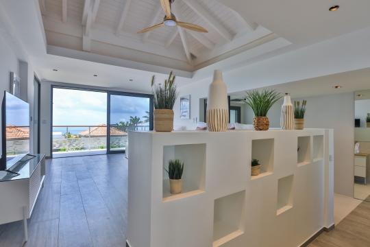 Inside the villa, you'll discover 4 beautifully decorated bedrooms, accessible from the interior space. Each bedroom is fully air-conditioned and has an en-suite bathroom, guaranteeing privacy and comfort. Three of them offer panoramic views of the pool and ocean. The fourth bedroom overlooks the garden and has its own private terrace where you can retreat to enjoy a moment of tranquility.