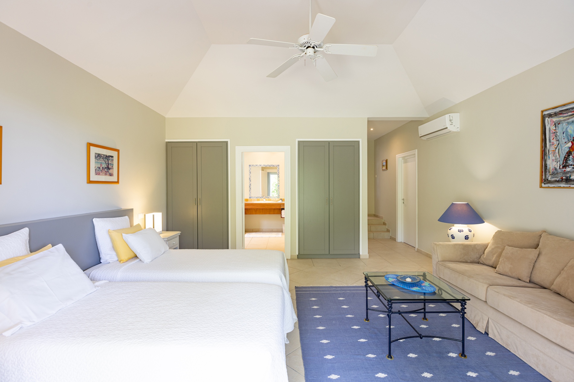 Spacious and bright, the villa features high ceilings and open living areas that create a relaxed and airy atmosphere. The large terrace, facing the ocean, is perfect for unwinding in the shade or watching the sun set over the horizon.